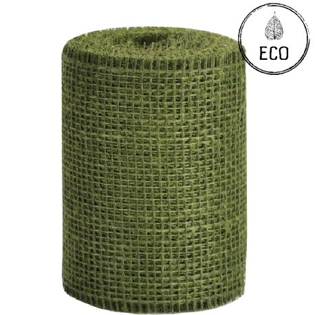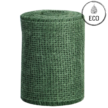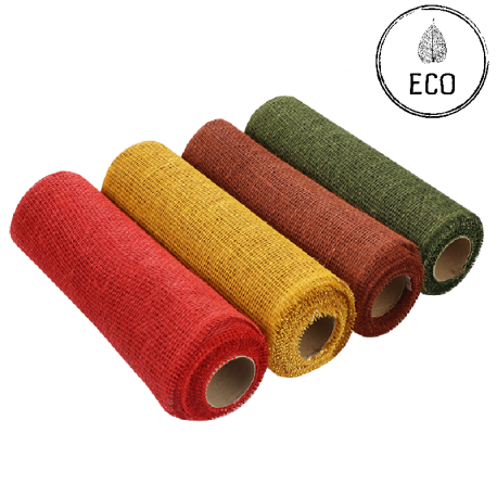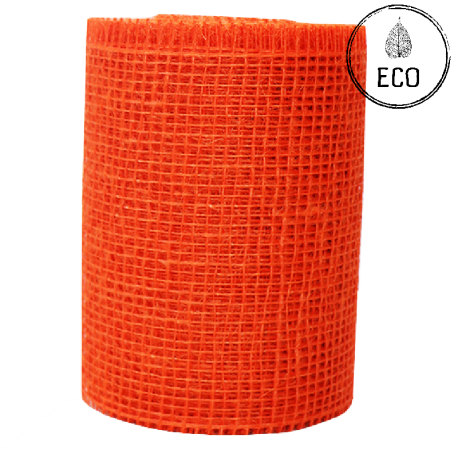 Een brede rol jute van 30 cm en 5 meter lang in een opvallende kleur, ideaal voor decoratie en knutselwerk