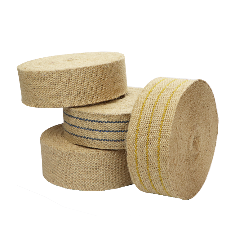 Jute singelband is een stevige band gemaakt van natuurlijke jutevezels. Het is milieuvriendelijk, duurzaam en wordt veel gebruikt voor meubelstoffering, decoratie en verpakkingen. De band heeft een robuuste, ambachtelijke uitstraling en biedt betrouwbare ondersteuning.