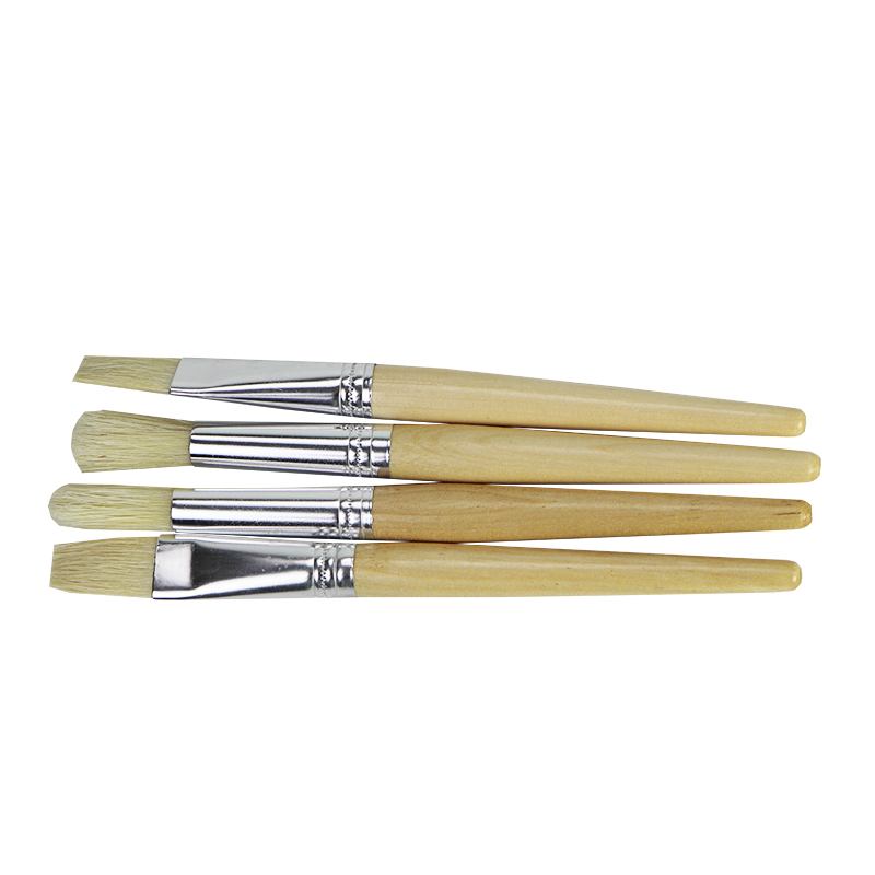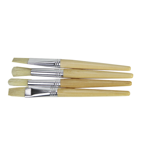 Een set van vier kwasten van verschillende maten en vormen, geschikt voor acryl-, olie- en waterverf.