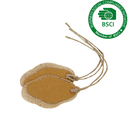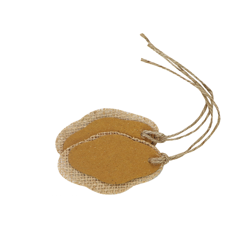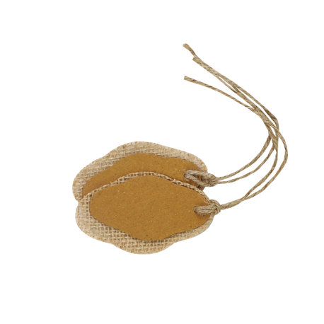 Labels van natuurlijk jute in de vorm van blaadjes, ideaal voor decoratie en creatieve projecten.