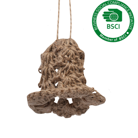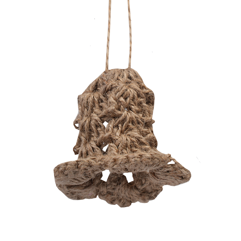 Een decoratieve bel gemaakt van natuurlijk jute, ideaal voor kerst- of feestdecoratie.