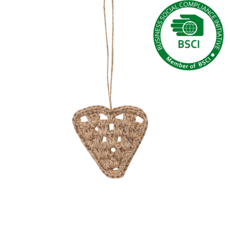 Decoratieve kerstversiering gemaakt van natuurlijk jute, zoals sterren, harten, boompjes of andere ornamenten.