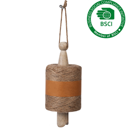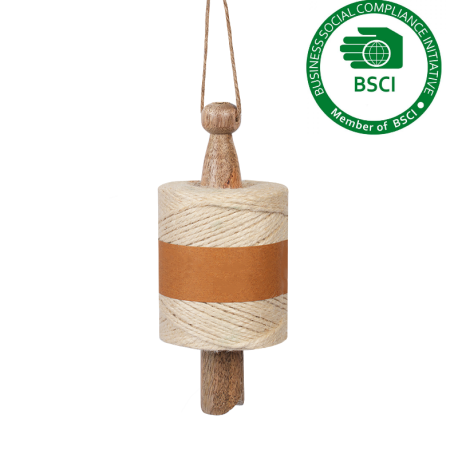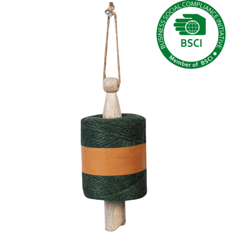 Ja, het is gemaakt van natuurlijk jute dat biologisch afbreekbaar en herbruikbaar is, gecombineerd met een stevige metalen of houten hanger.