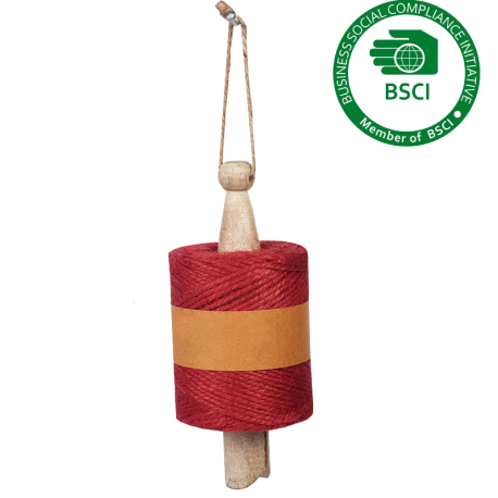 Stevig natuurlijk jute touw met een bevestigingshanger, ideaal voor ophangen van planten of decoratie.
