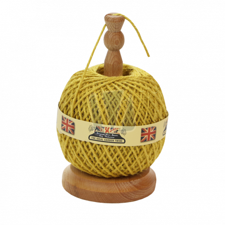Een complete set met een houten klos, een mes en 130 meter natuurlijk jute touw, ideaal voor knutsel- en tuindoeleinden.